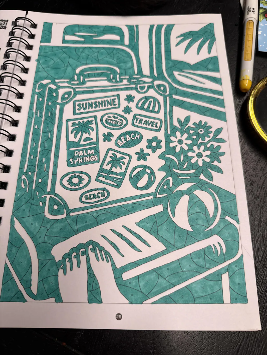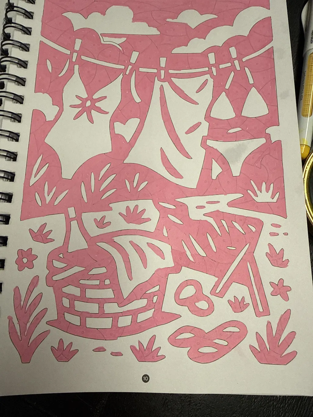 I just started on this one and I love it! I’ve used three types of markers on it so far and they’ve all responded well. I like how sometimes I can’t tell what an item is in an image until I color it in.
