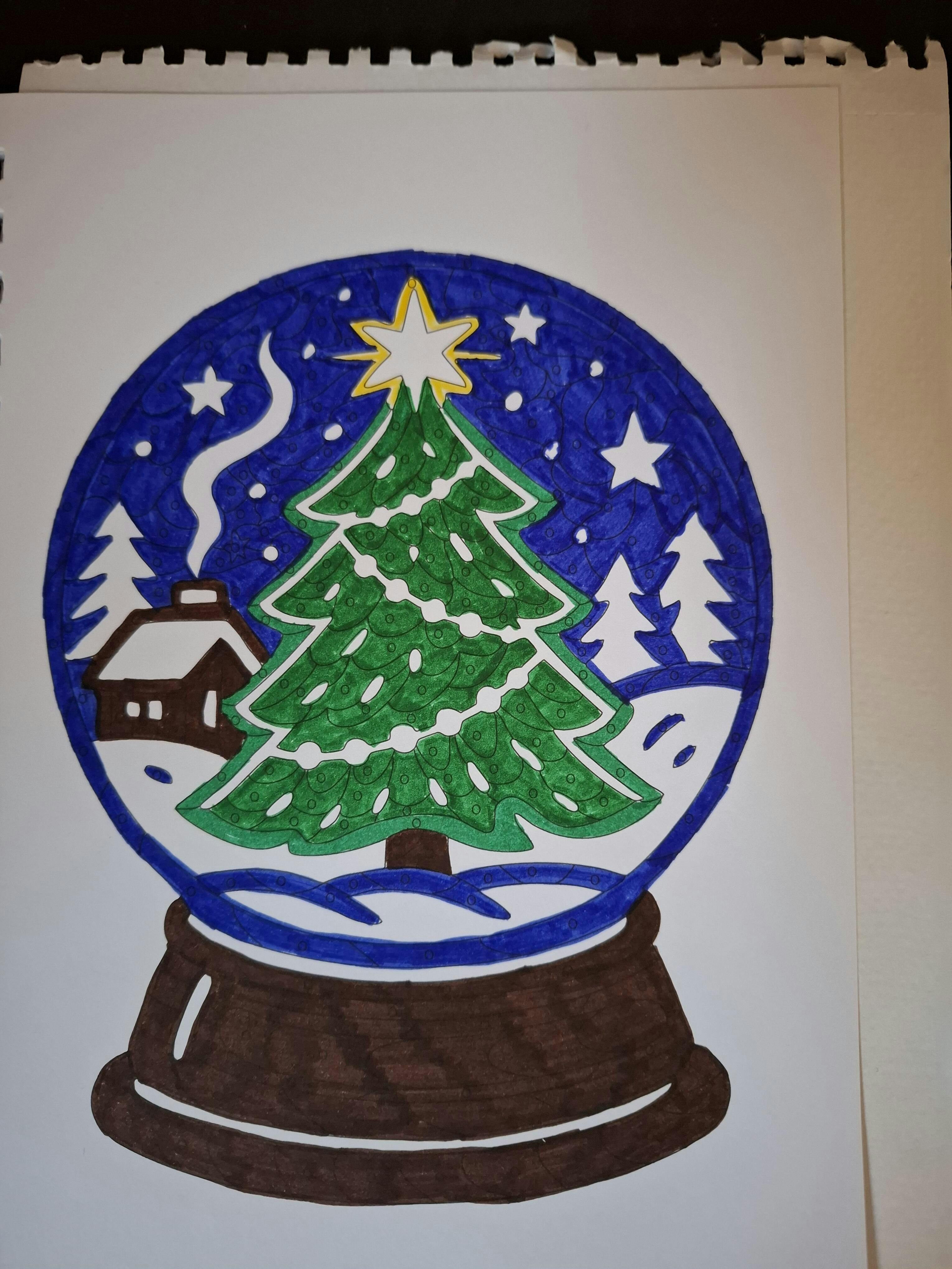 Just finished one of the pages. So happy I bought this. It's a great way to spend some me-time. Colouring with some music one in the background, a nice cup of tea (or whatever you prefer). Ideal for the busy holiday season, while staying in theme! The ring binder makes for easy colouring, no struggles with the borders of regular bindings. Highly recommended for screen free moments just for yourself or someone else!